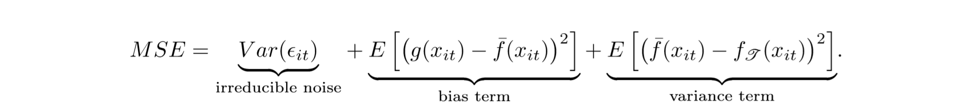 Or, in more formal terms, the expected squared forecast error (MSE) can be separated into three types of forecast error: