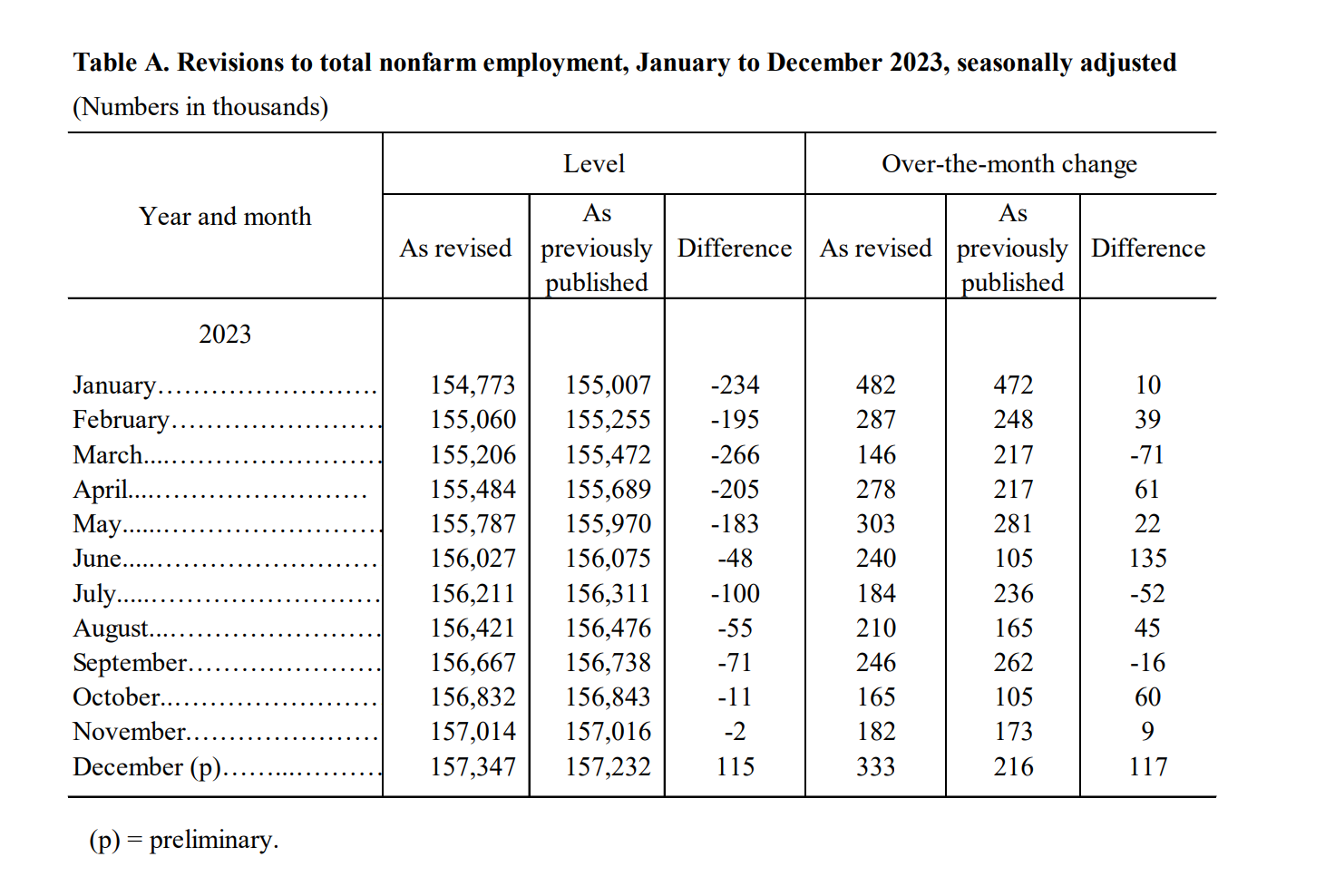 During 2023, nonfarm payroll changes were usually revised upward later by the Bureau of Labor Statistics, by an average of 30,000.