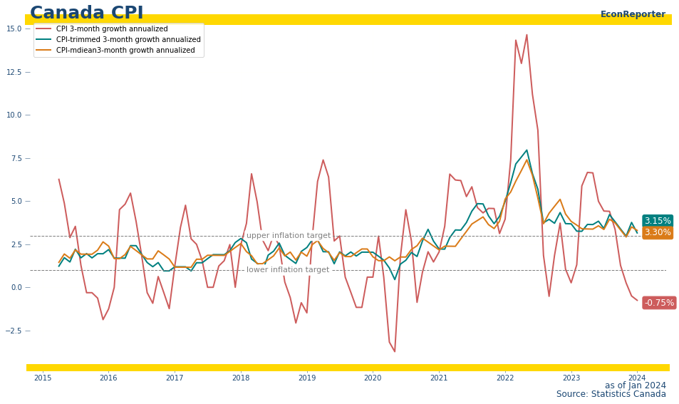 “Underlying inflationary pressures persist: year-over-year and three-month measures of core inflation are in the 3% to 3.5% range, and the share of CPI components growing above 3% declined but is still above the historical average.”