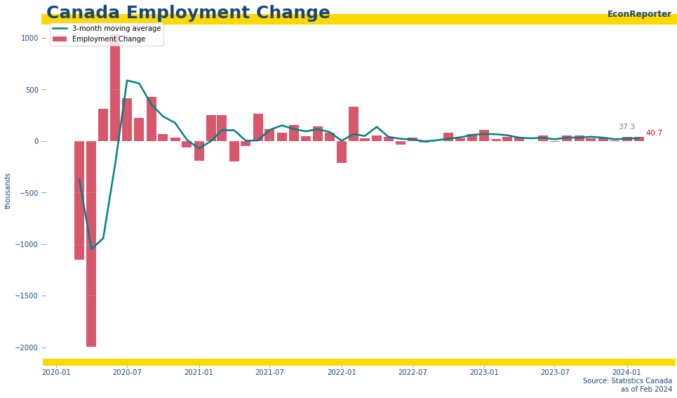 The drop of employment rate followed a 40,700 increase in the number of people got a job in Feb. On average, close to 28,300 jobs were created monthly between December and February.