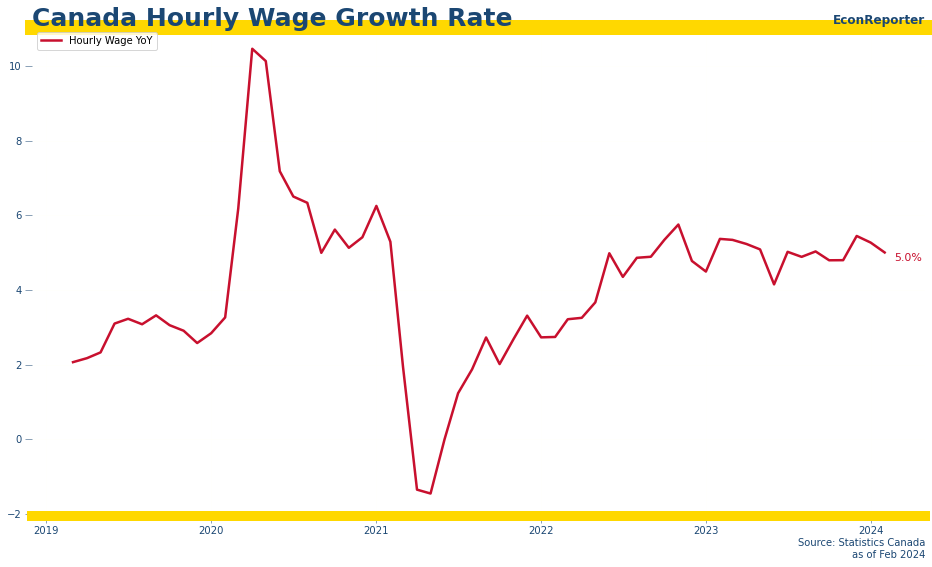 As the employment market became less tight, hourly wage in February increased only 5.01% compared to a year ago. That’s the second month in a row that wage grow decelerated, from a recent peak of 5.45% booked in December.