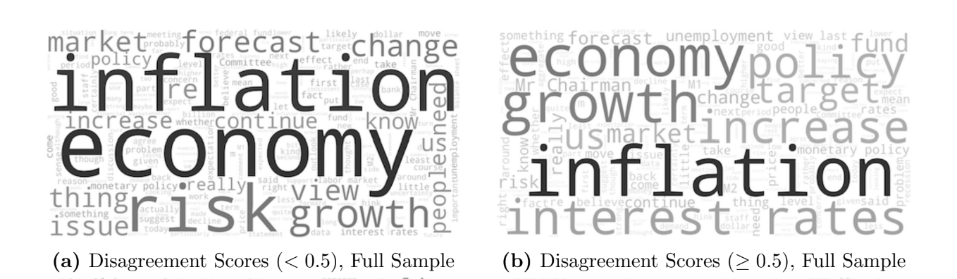 - The lower disagreement score can also be related to the fact that Alan Greenspan in Oct 1993 suddenly revealed the existence of old Fed meeting transcripts, a fact which caught most FOMC members by surprise and potentially made the Fed officials more aware of how to express themselves during the meetings.