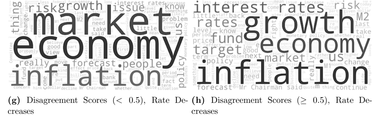 The researchers also used the transcript database to build several word clouds to illustrate the potential differences in the policy priorities between those who went with the chairman’s consensus and those who didn’t.