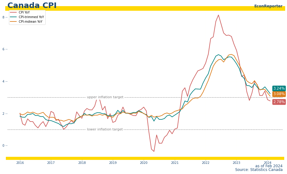 Canada’s CPI rose 2.78% in February, a further slowdown from the 2.86% increase in the previous month.