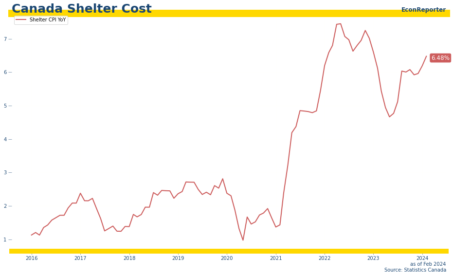 Still, shelter cost growth continues march high, reaching 6.48% in February.