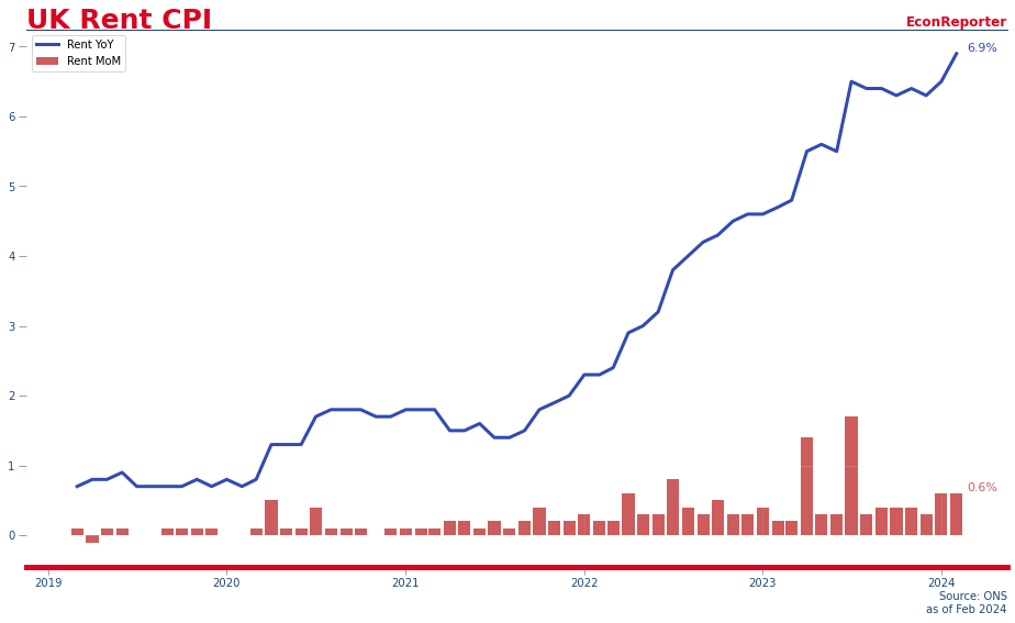 While disinflation is the major theme of the report, the yearly rate of rent CPI was marching higher,