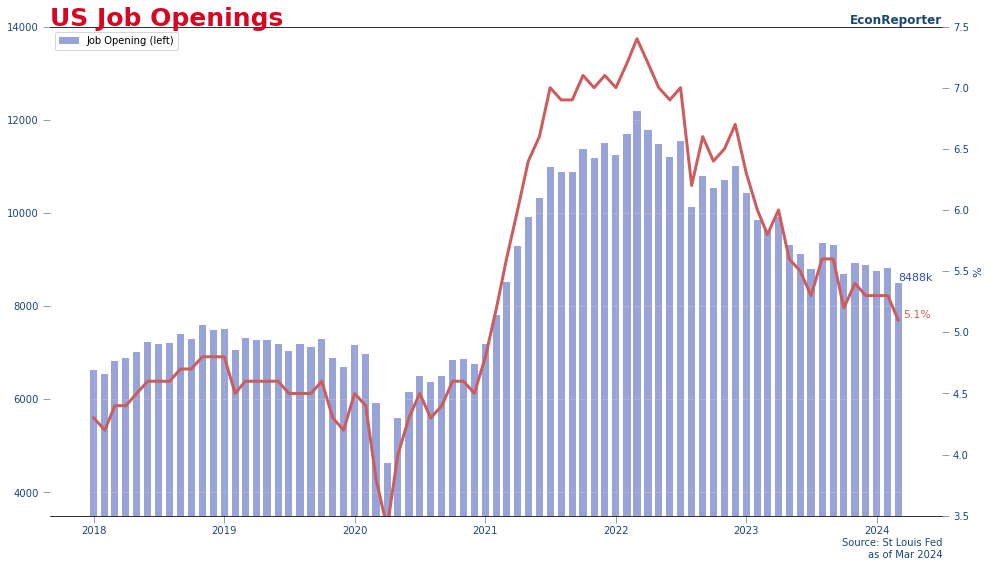 - the job opening rate also lowered to 5.1% from 5.3%.