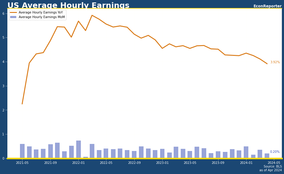 Average hourly earnings growth YoY: 3.92% (March:4.11%) ; MoM: 0.20% (March:0.3%)