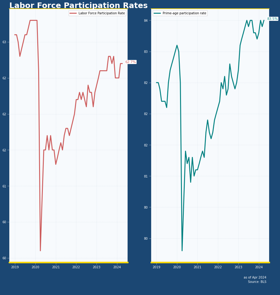 • Prime-age participation rate was 83.5% (March:83.4%)