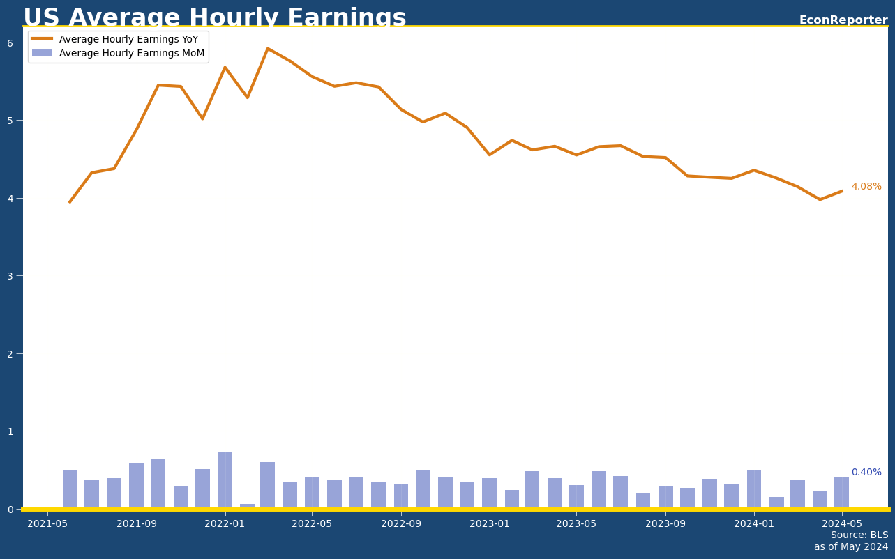Meanwhile, average hourly earnings increased by 4.08% over the year to May, first time we see an acceleration in the number since January. Over the month, average hourly earnings increased 0.4%, highest since January.