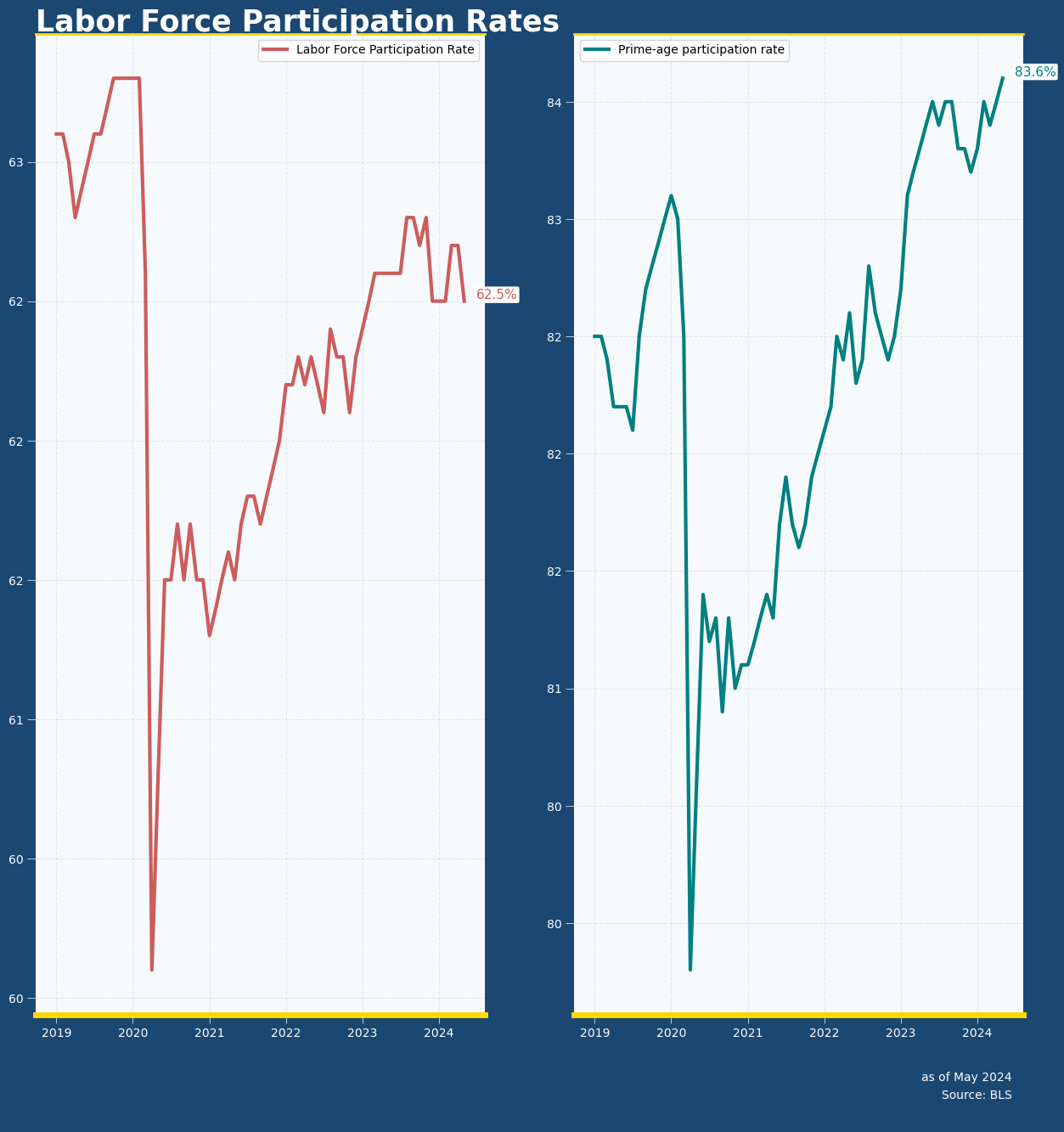The increase in jobless rate was driven by a drop in labor participation rate, to 62.5% from 62.7%. Nonetheless, prime-age (25 to 54 years old) participation rate increased 0.1 ppt to 83.6%.
