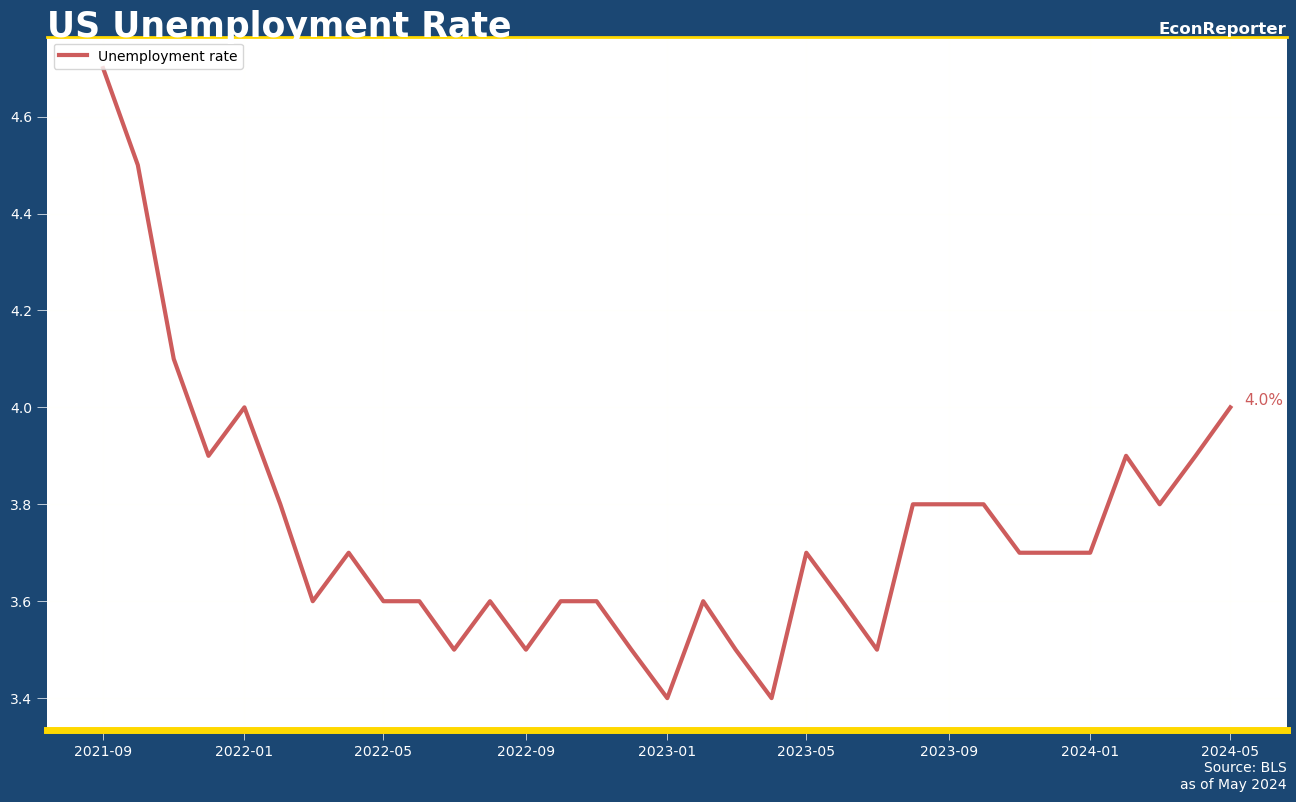Unemployment rate rose to 4%, highest since November 2021.