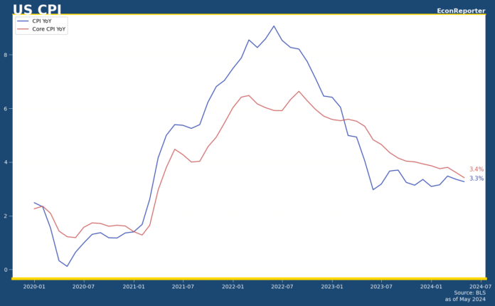 US CPI grew 0% in May as the yearly growth rate dropped to 3.27%, a further sign of decelerating inflation after the price increases sped up in Q1, according to the latest report from the Bureau of Labor Statistics.