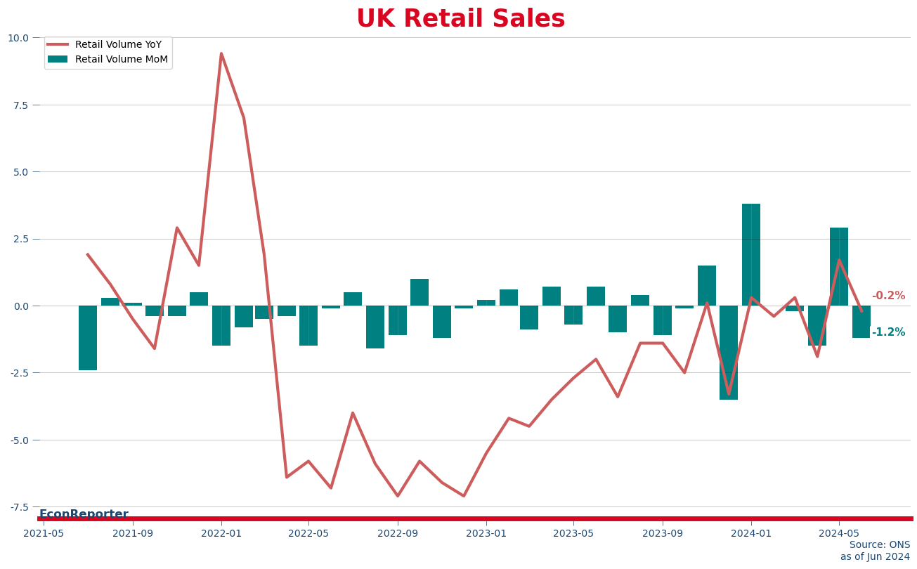 Retail volume: -1.2% MoM (May: 2.9%); -0.2% YoY