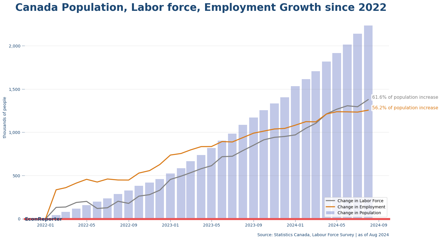 Over the same period, over 1.3 million people joined labor force. Put in another way, the increase size of the labor force since 2022 amounts to 61.6% of the population growth. That’s a 61.6% “labor force participation rate”.