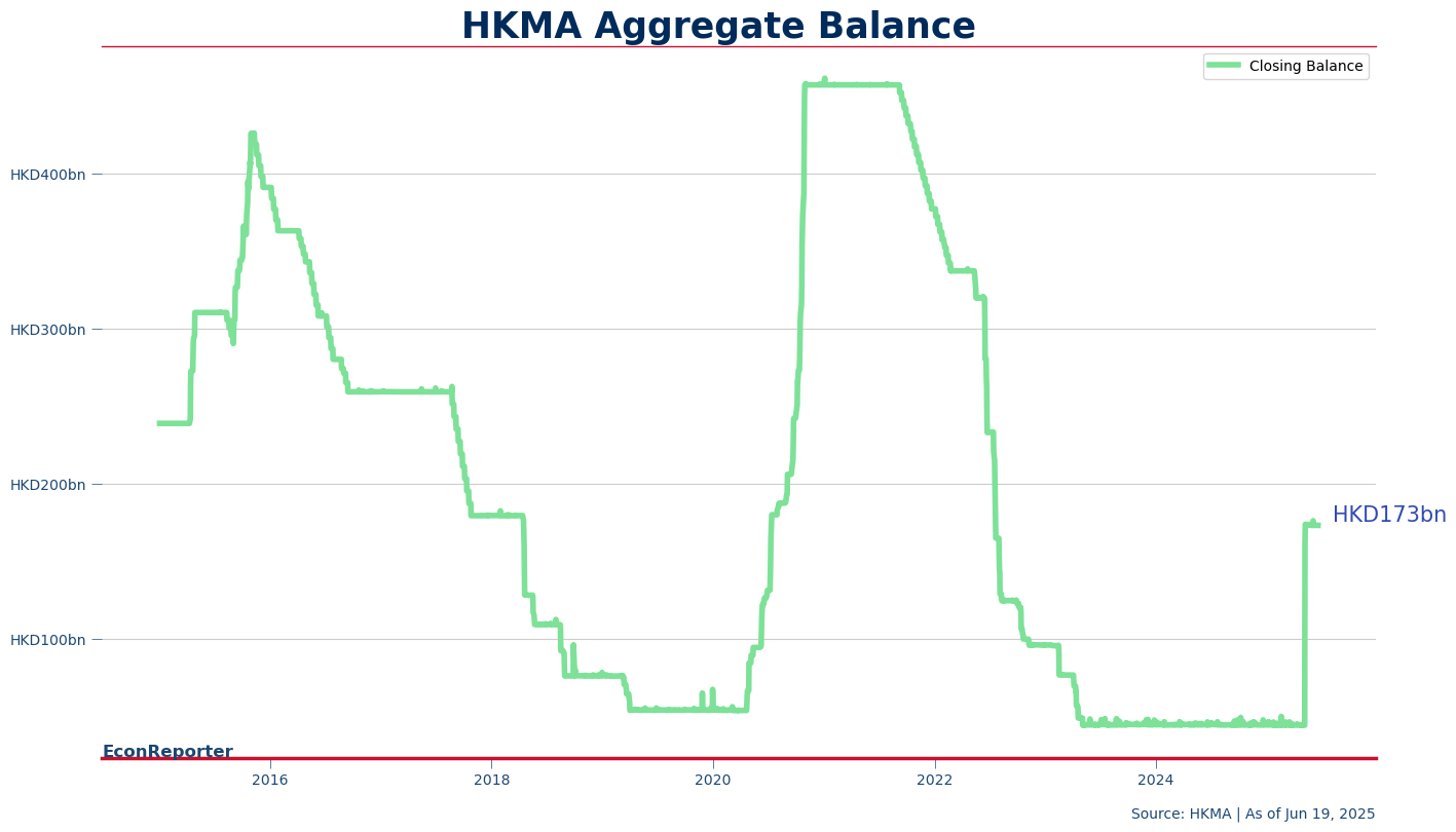 The Hong Kong Monetary Authority (HKMA) had to intervene in the foreign exchange market, selling HKD 129 billion to the Hong Kong banking system in two days to defend its Linked Exchange Rate System. This HKD injection was unprecedented in scale, flooding the Aggregate Balance with significant liquidity and raising the level from just above HKD 40 billion to over HKD 178 billion.