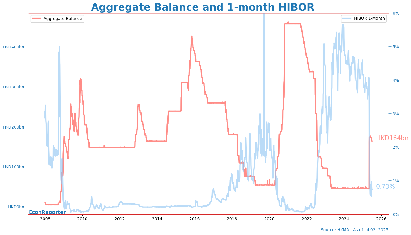 The Aggregate Balance is the sum of all clearing accounts which banks in Hong Kong hold with the HKMA.