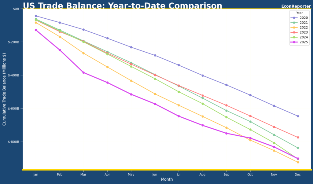 Now we have a full picture of the accumulated trade balance in 2025: compared to 2024, full-year trade deficit for goods and services was merely USD 2.06 billion lower. The shortfall was unusually concentrated in the first half of the year as firms rushed to stock-up foreign products before the tariff policies hit.