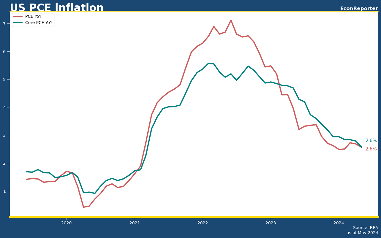 US PCE price index showed 0% monthly inflation in May, same as the headline CPI reading reported earlier, showing signs that inflation is again decelerating.