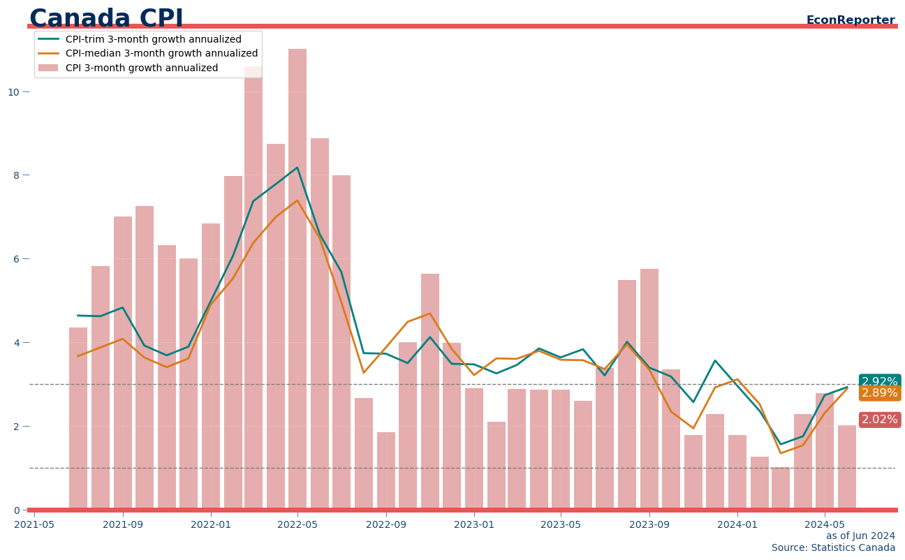 Canada CPI June 2024: 2% (3-month annualized rate)