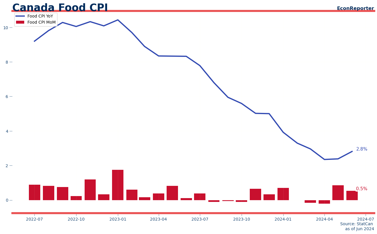 Canada Food CPI June 2024: 2.8% YoY