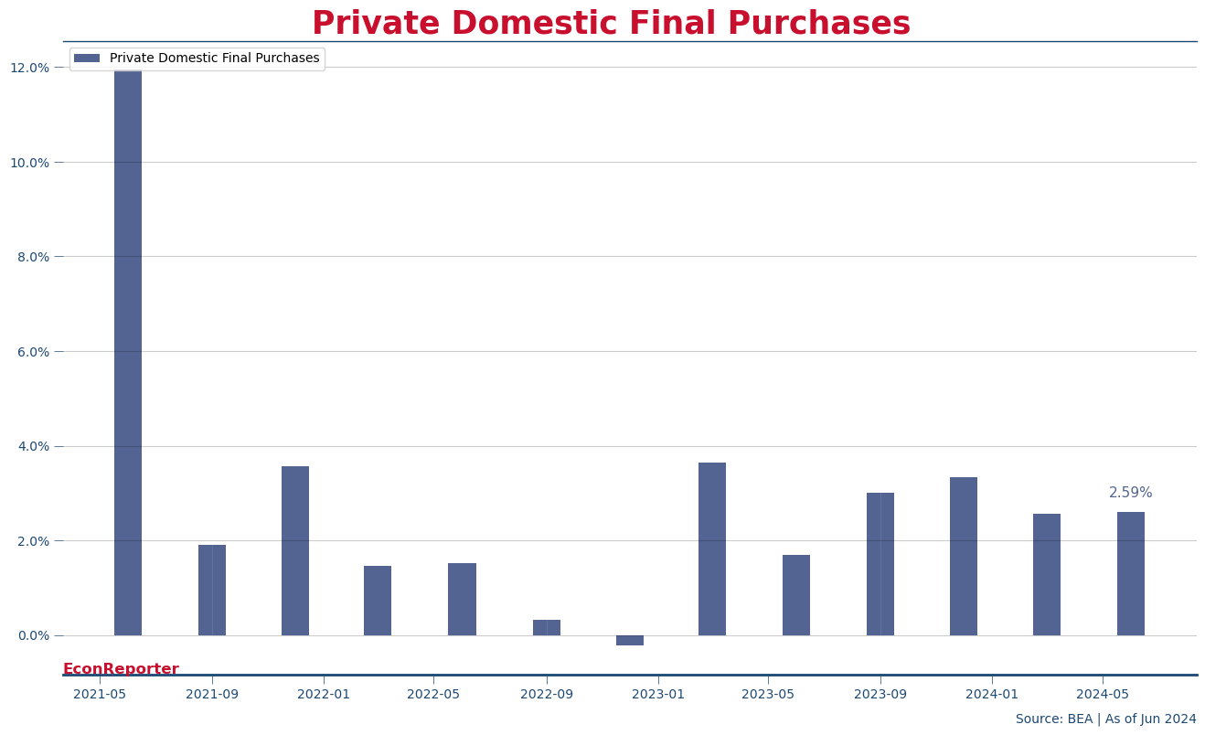 Final sales to domestic purchasers, which is the sum of personal consumption expenditures and gross private fixed investment and is a figure that doesn’t subtract the spending on imports, increased 2.6% in Q2, the same rate as in the first quarter and continued to signal strong spending pattern in the US economy.