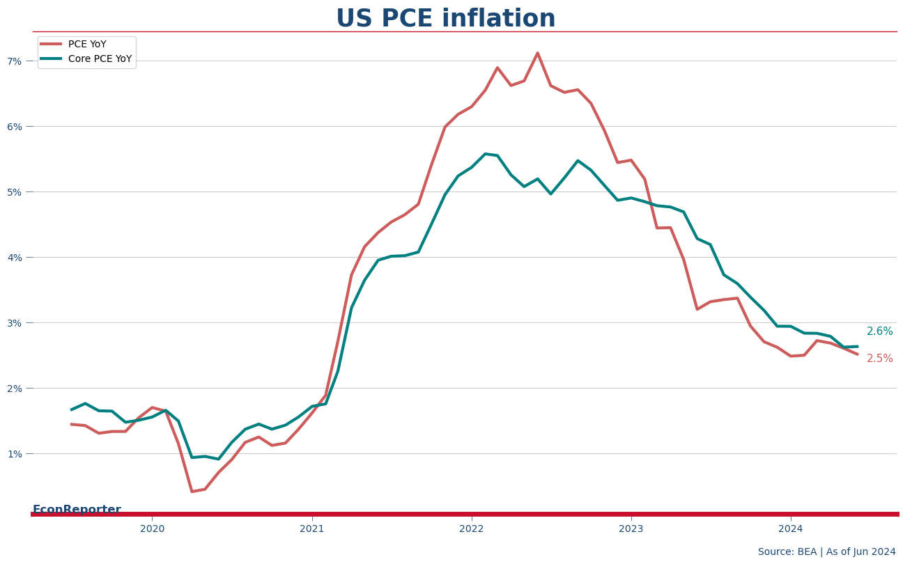 Inflation in the US cooled off further to 2.5% over the year to the end of June, according to the latest reading of US Bureau of Economic Analysis’s PCE price index. Stripping out energy and food prices, core inflation remained at 2.6%, same as in May. Both headline and core inflation year-over-year readings were in line with market expectations.