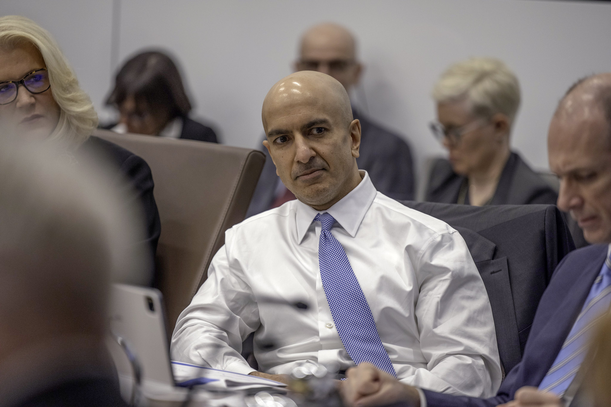 Federal Reserve Bank of Minneapolis President Neel Kashkari (left) and Federal Reserve Bank of Chicago President Austan D. Goolsbee participate in the Federal Open Market Committee (FOMC) meeting at the William McChesney Martin Jr. Building in Washington, D.C., held on January 30-31, 2024. Photo via Federal Reserve Flickr Minneapolis Fed President Neel Kashkari also said “the balance of risks has shifted” so it’s appropriate to debate a potential rate cut in the upcoming FOMC meeting, in an interview with the Wall Street Journal.