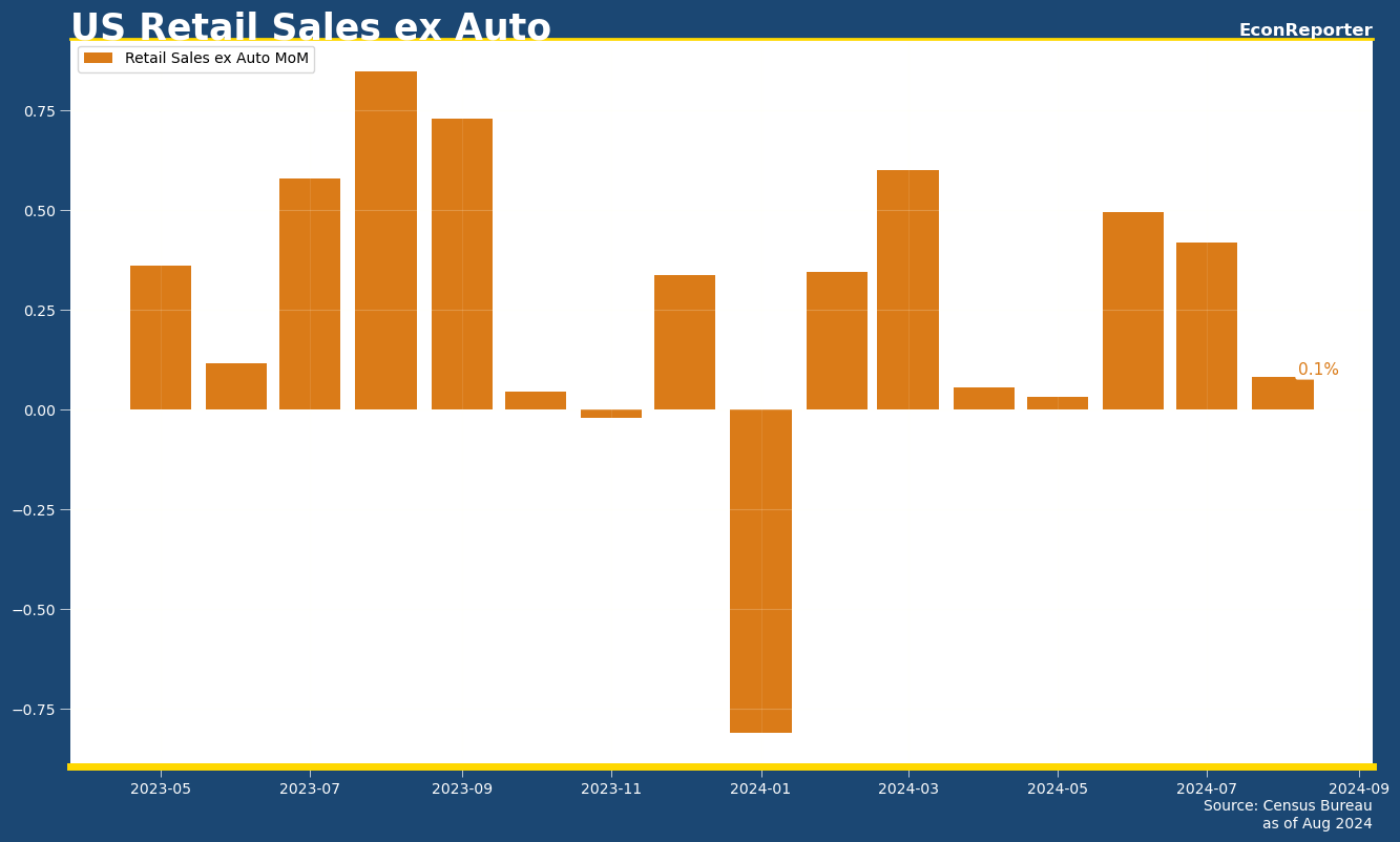 Excluding motor vehicle and parts, sales rose 0.1%, slightly undershot the 0.2% consensus estimate.