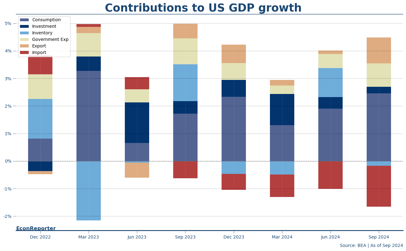 US GDP increased by more than 2.8% at an annualized rate in Q3, supported by continued acceleration the growth of personal consumption expenditures.