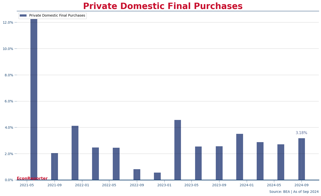 Looking at private domestic final purchases, a gauge of domestic demand which excludes the effect of government consumption, trade and inventories and is often cited by Federal Reserve officials, showed that local expenditures accelerated to almost 3.2%, from 2.7% in Q2.